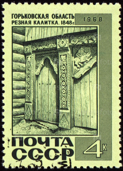 Почтовая марка СССР с изображением резной калитки в Горьковской области