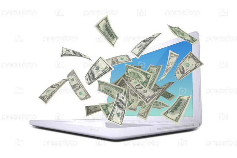 Доллары летают вокруг ноутбука