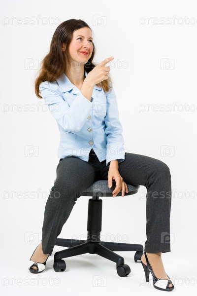 Молодая женщина указывает на что-то