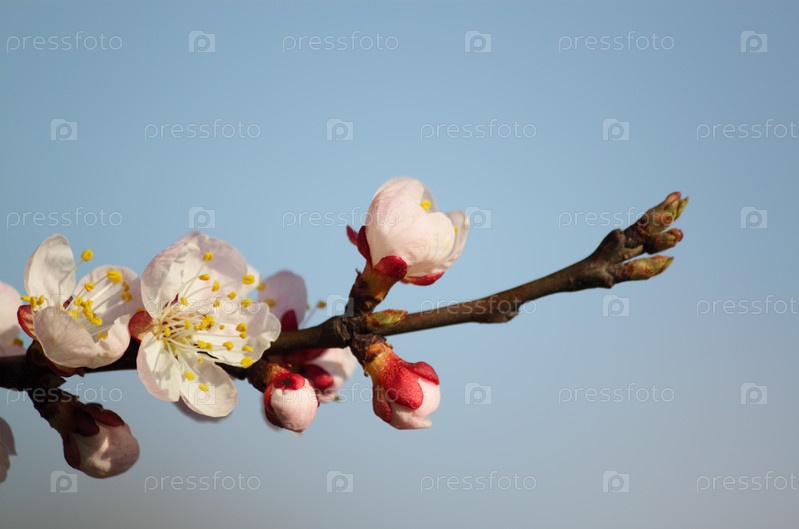 Цветущая ветка вишни на синем фоне