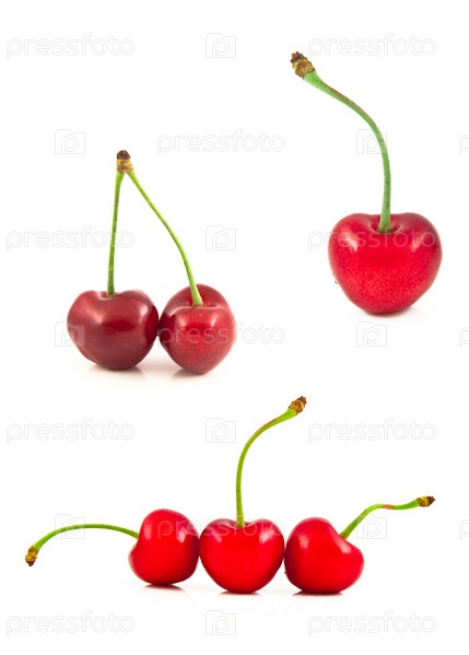 Набор спелых вишен на белом фоне