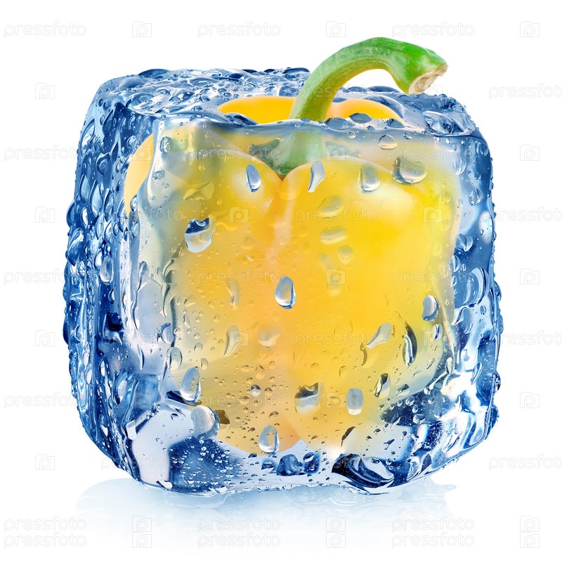 Желтый перец в кубике льда
