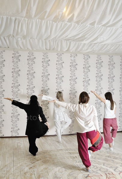 Четыре женщины занимаются йогой