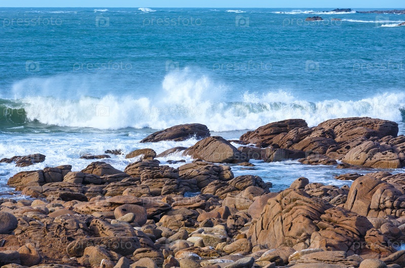 Берега из розового гранита. Бретань, Франция