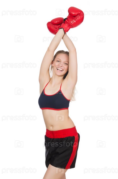 Женщина боксер на белом фоне