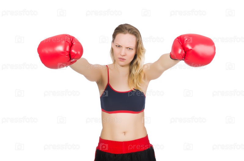 Женщина боксер на белом фоне