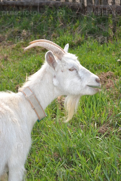 Белая коза на зеленом лугу