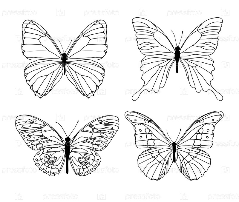 Силуэты четырех бабочек на белом фоне