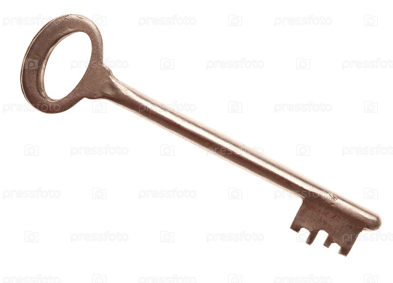 Старый металлический ключ на белом фоне