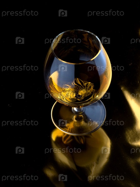 Алкогольный напиток в бокале, на темном фоне