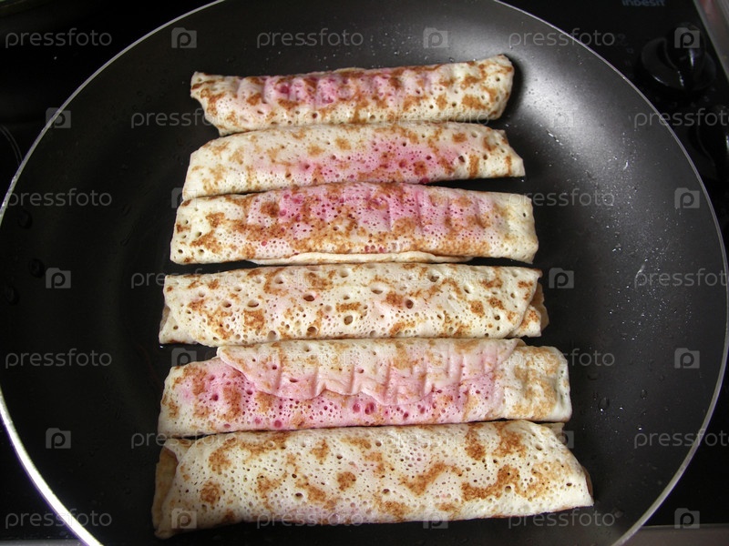 Блинчики с вишней на сковородке