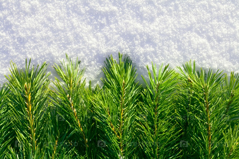 Еловые ветки на фоне снега крупным планом