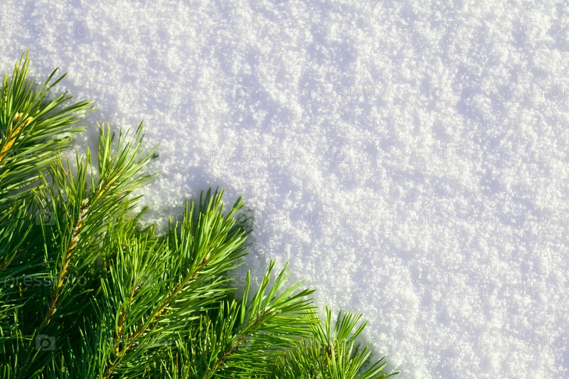 Еловые ветки на снегу крупным планом
