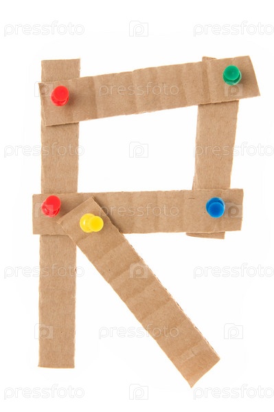 Картонная буква R на белом фоне