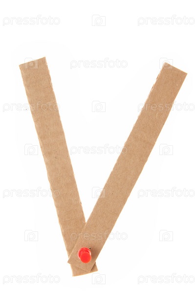 Картонная буква V на белом фоне