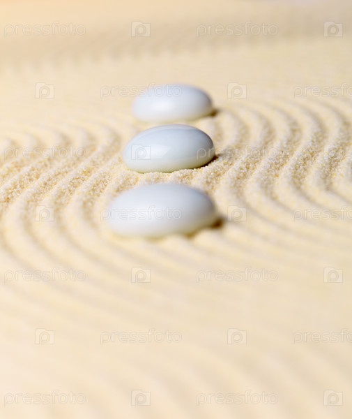 Abstract композиция три белых камня на желтом песке - Дзен-сад