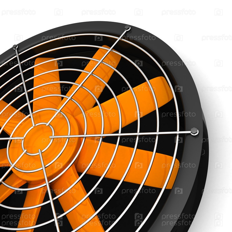 Вентилятор с оранжевыми лопастями на белом фоне