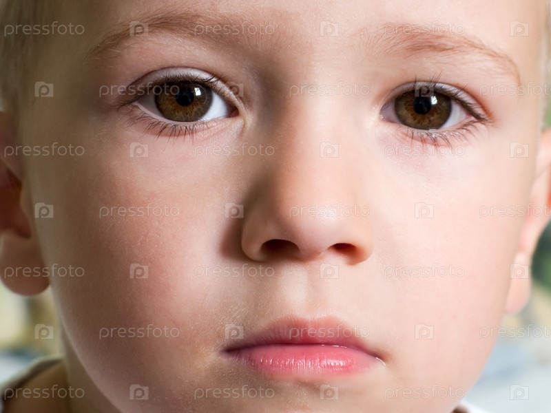 Маленький ребенок-мальчик, выглядящий серьезно в печали