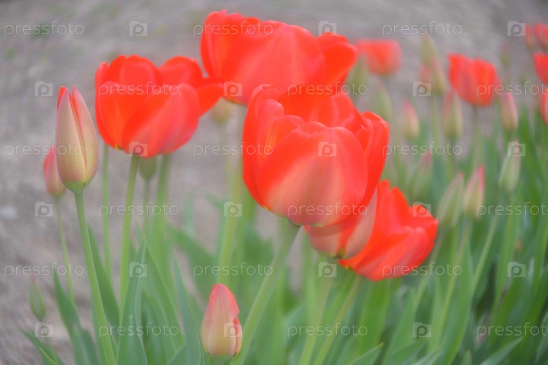 Расцветающие алые тюльпаны