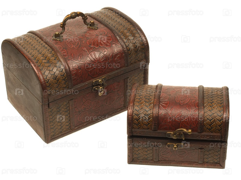 Две деревянные шкатулки в виде сундучков на белом фоне