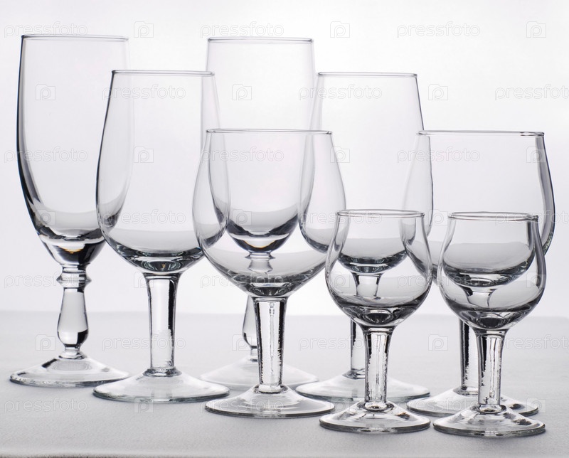Большой набор бокалов на светлом фоне