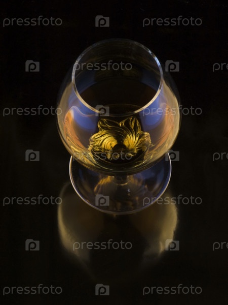 Бокал коньяка на черном фоне