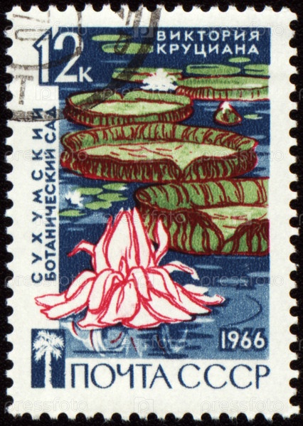 Почтовая марка СССР 1966 года, кувшинка в Сухумском ботаническом саду