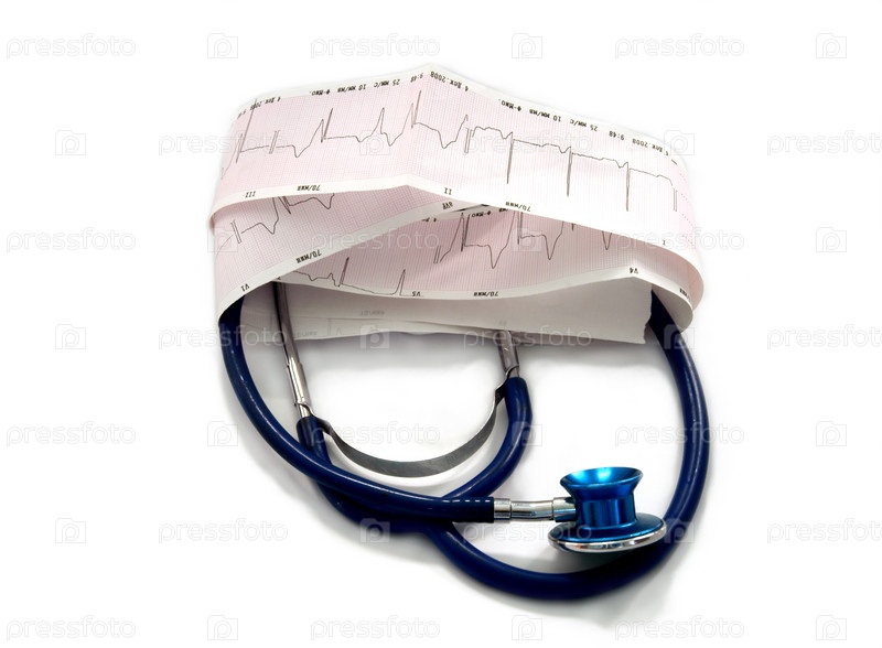 Кардиограмма и стетоскоп на белом фоне