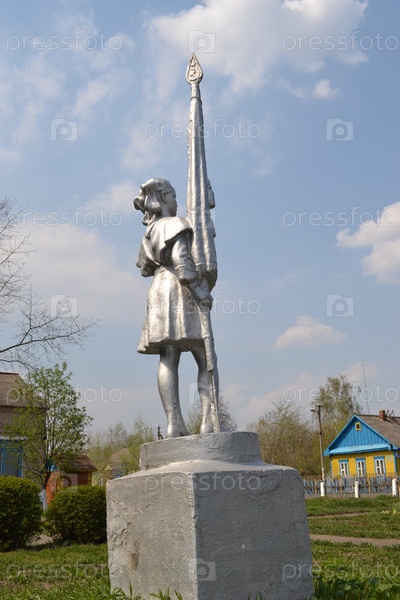 Памятник пионерке со знаменем у сельской школы