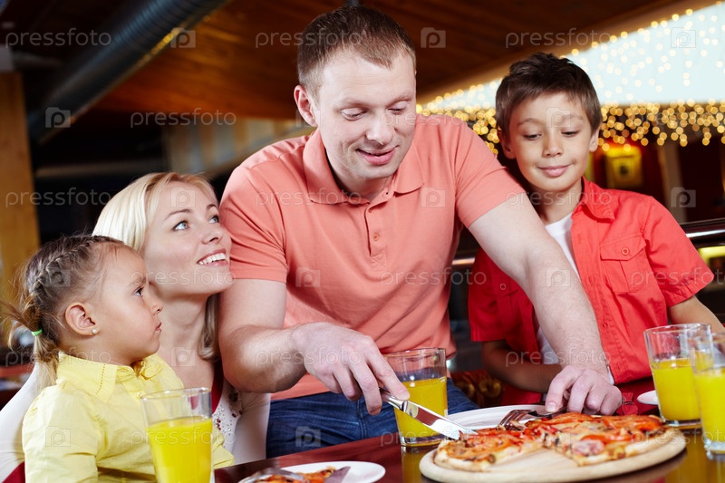 Семья в пиццерии