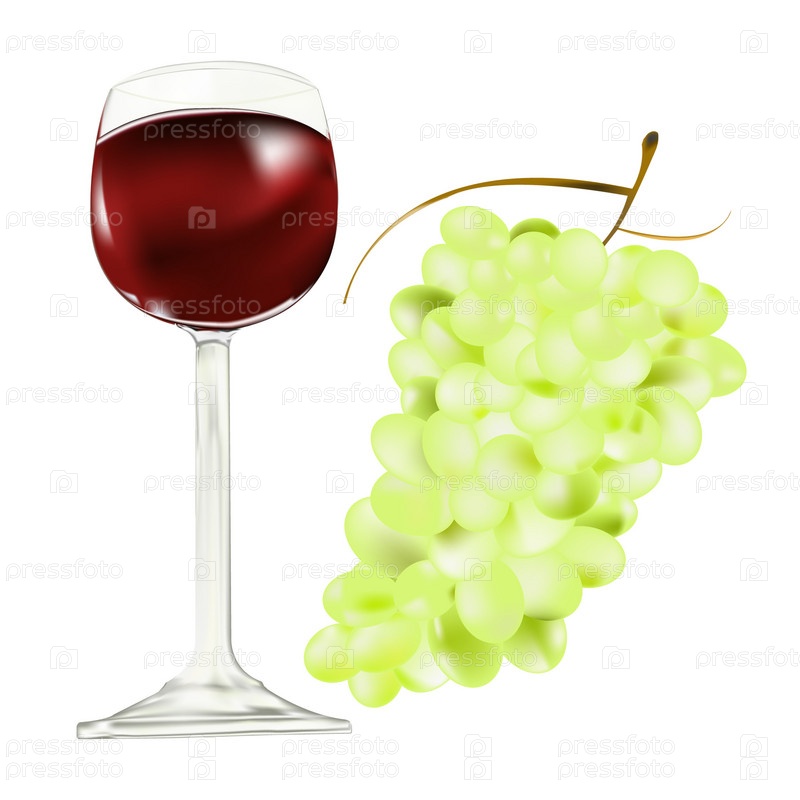 Бокал вина с гроздью винограда на белом фоне