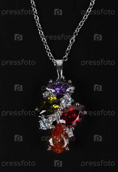 Кулон с камнями на серебряной цепочке