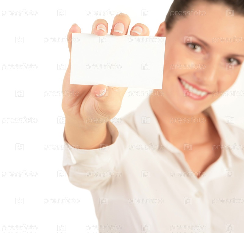 Фото молодой красивой женщины, представляющей свою визитку