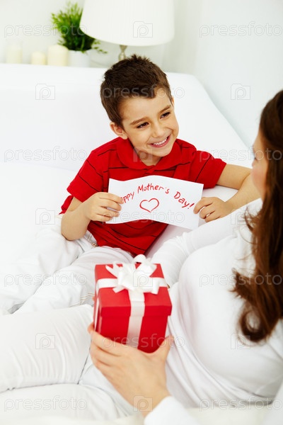Мальчик поздравляет маму