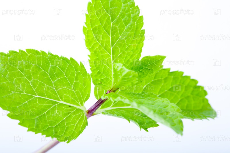 Ярко-зеленые свежие листья мяты на светлом фоне