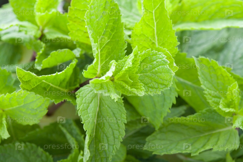Ярко-зеленые свежие листья мяты крупным планом