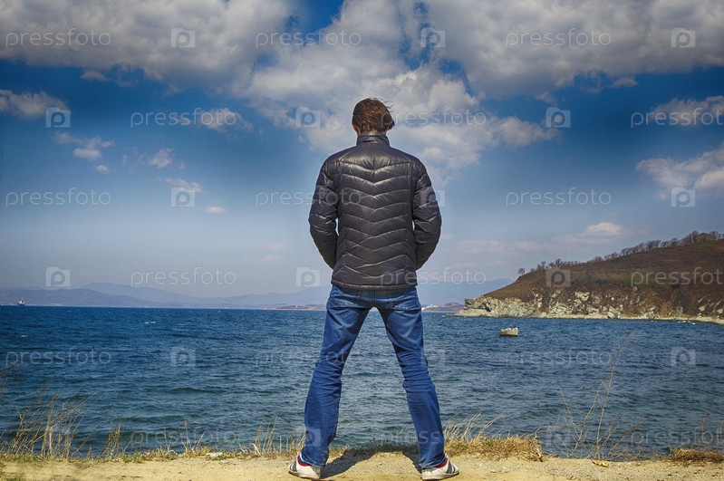 Мужчина стоит лицом к морю