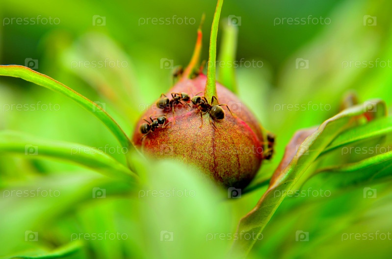 Муравьи на бутоне пиона