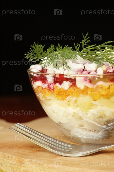 Салат «селедка под шубой» в стеклянной чашке