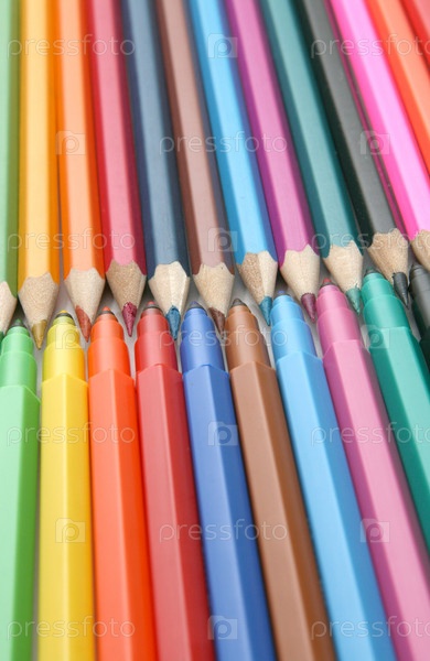 Цветные карандаши и фломастеры крупным планом