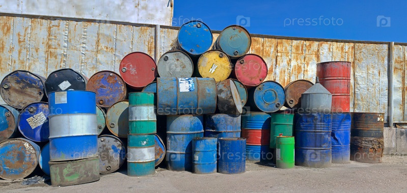 Ржавые металлические бочки с топливом