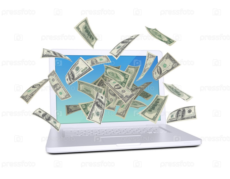 Доллары летают вокруг ноутбука