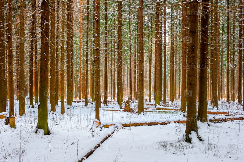 Зимний еловый лес