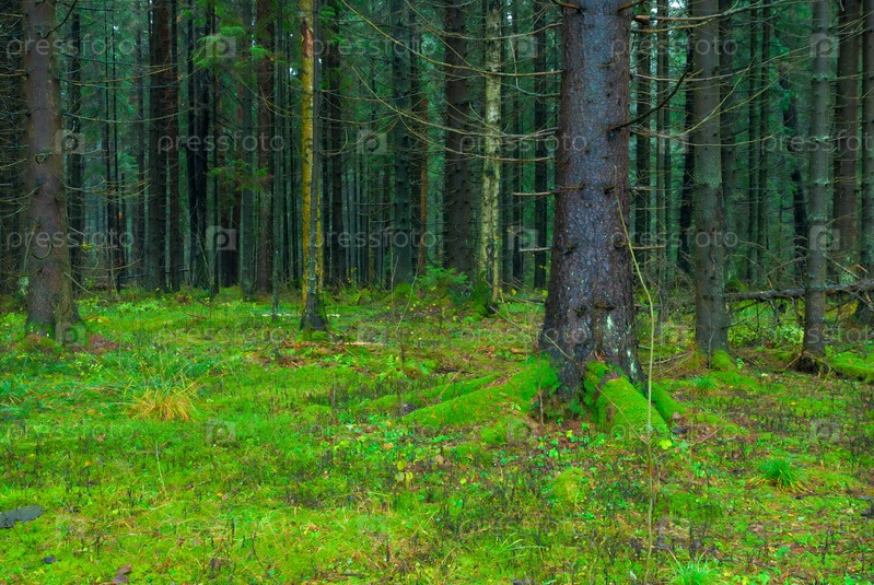Густой еловый лес