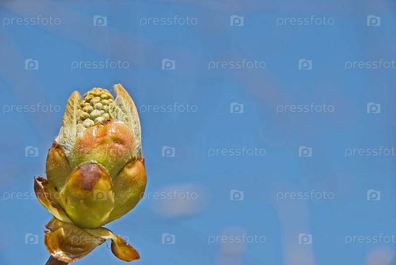 Зеленая почка на фоне неба