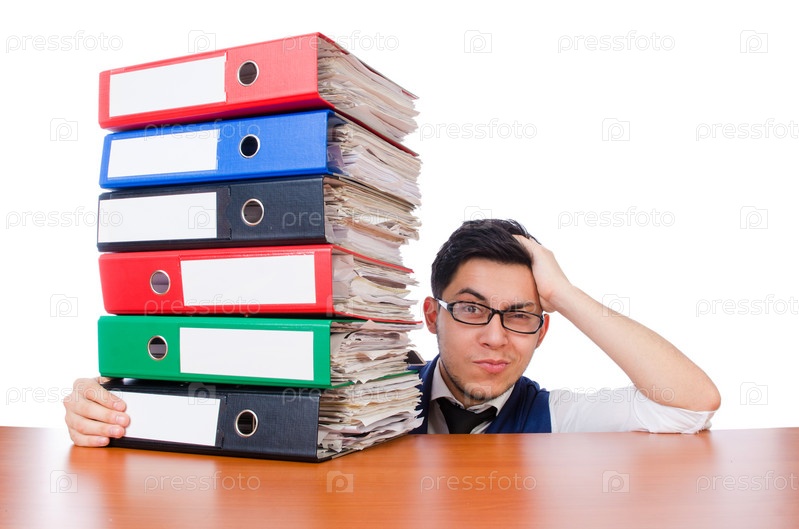 Забавный мужчина с большим количеством папок
