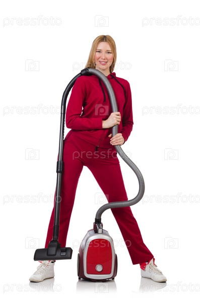 Молодая женщина с пылесосом