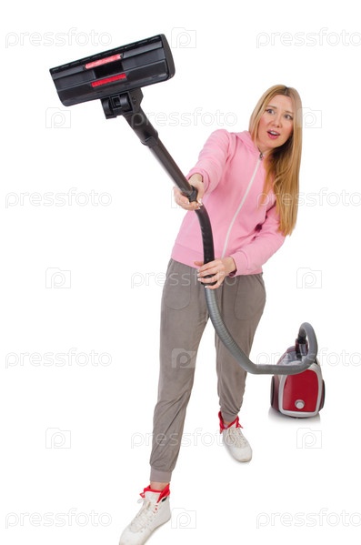 Молодая женщина с пылесосом