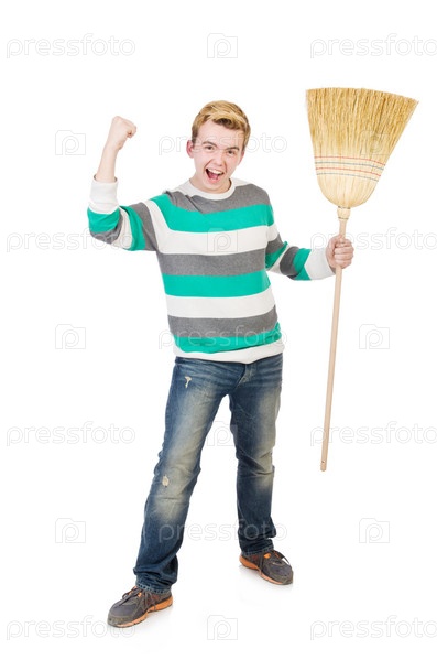 Забавный мужчина с метлой