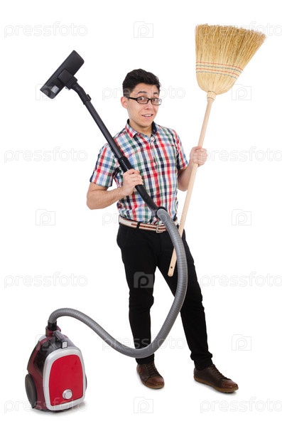 Человек с пылесосом и веником